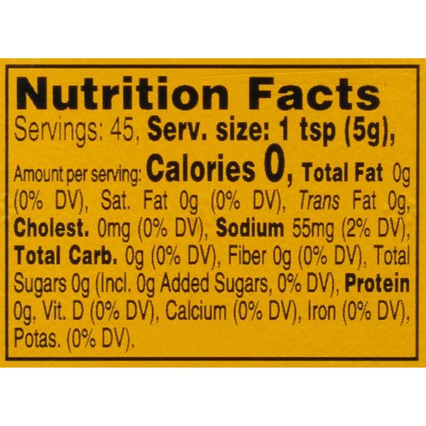 Distilled Vinegar, Water, #1 Grade Mustard Seed, Salt, Turmeric, Paprika, Spice, Natural Flavors and Garlic Powder.
