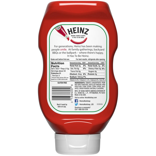 Heinz Tomato Ketchup is made only from sweet, juicy, red ripe tomatoes for the signature thick and rich taste of Americas Favorite Ketchup. Only the best tomatoes for the best ketchup. Did you know that every tomato in every bottle of Heinz Ketchup is grown from Heinz seeds? Grown not made... One reason why no other ketchup taste like Heinz Ketchup! The thick texture makes this bottled ketchup perfect for spreading or dipping, and it's gluten free and great for those keeping Kosher to fit your preferences. Reach for this Kosher ketchup at every cookout to top your favorite burgers, hot dogs and sandwiches. Packed in 14 ounce ketchup bottles for easy sharing, this condiment is your go-to option for gatherings and everyday meals.