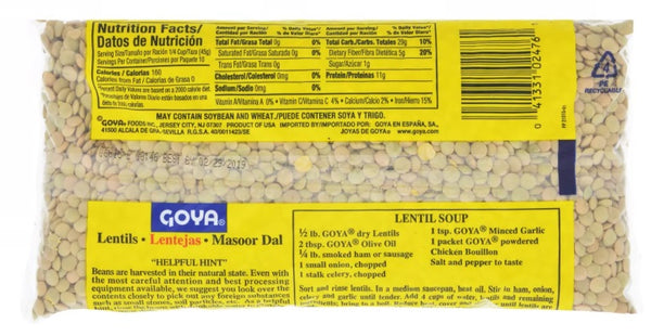 These meaty-flavored, high-quality dry lentils are quick and easy to prepare as an ingredient for nutritious dishes such as classic lentil soup, stews, salads or with rice. GOYA® dry beans' quality makes them the preferred brand of dry beans in the U.S.