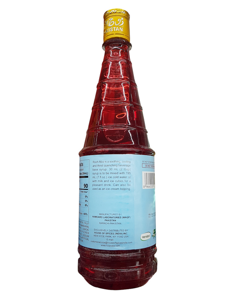 Rooh Afza is a soothing, cooling and thirst quenching beverage base syrup. 30 ml. (2 tbsp.) syrup is to be mixed with 195ml. (7 fl.oz.) ice cold water or with milk and ice cubes for a pleasant drink. Can also be used as an ice cream topping.