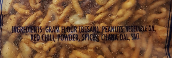 Ingredients: Gram Flour (Besan), Peanuts, Vegetable Oil, Red Chili Powder, Spices, Chana Dal, Salt.