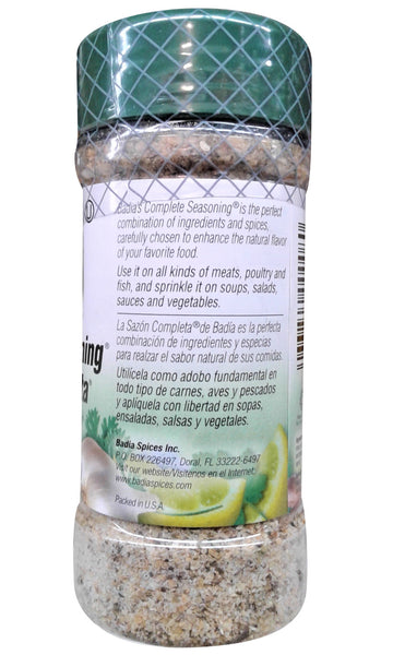 Enhance the natural flavor of a wealth of recipes with this Badia Complete Seasoning. It is made with a blend of dehydrated garlic and onions, cumin and other herbs and spices that create a bright flavor that is reminiscent of Latin food. This natural seasoning, 3.5 oz, pack of 8 is ideal for use on beef, pork, poultry and fish. It has zero calories and will also add tasty flavor to soups, salads and cooked vegetables.