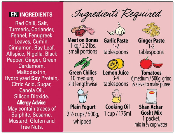 Shan Achar Gosht mix helps you recreate the authentic traditional taste of Achar Gosht with its perfect blend of rich, aromatic and tangy spices. ix for meat in pickle condiments.