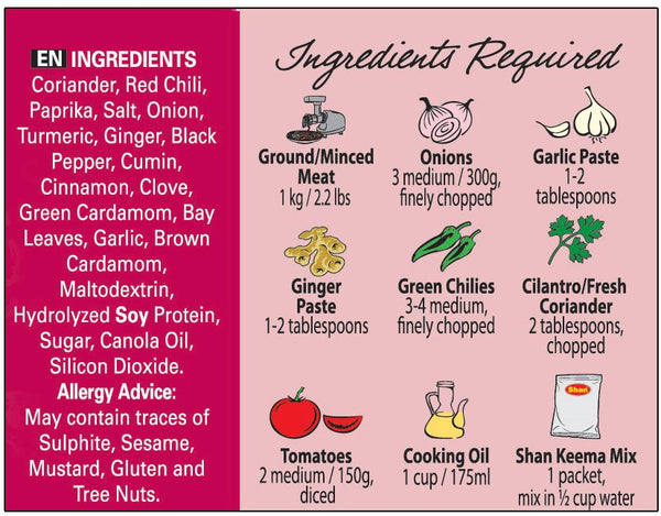 Shan Keema Mix helps you create the delicious stir fried ground meat to perfection at home. Mix for stir fried ground meat.