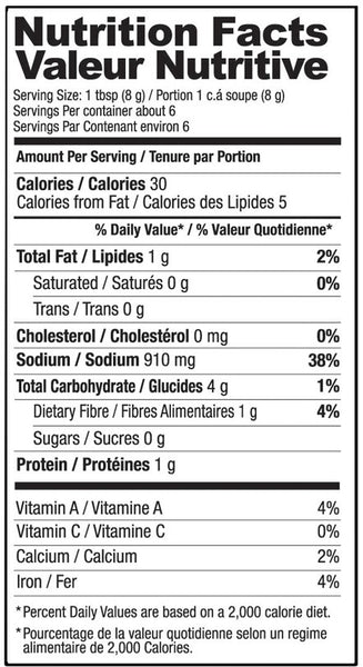 Coriander, Red Chili, Paprika, Salt, Onion, Turmeric, Ginger, Black Pepper, Cumin, Cinnamon, Clove, Green Cardamom, Bay Leaves, Garlic, Brown Cardamom, Maltodextrin, Hydrolyzed Soy Protein, Sugar, Canola Oil, Silicon Dioxide.