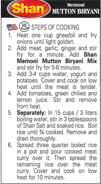 Shan Memoni Mutton Biryani Mix with its classic blend of rich and aromatic spices imparts the perfect flavor to beef and helps you recreate the true Biryani flavor Mix for Gujrati style Pilau