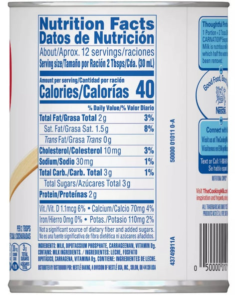Elevate your favorite recipes with Nestlé Carnation Vitamin D Added Evaporated Milk. As a substitute for drinking milk in both sweet and savory recipes, Carnation Evaporated Milk has been a kitchen staple for cooks and bakers for years, and our evaporated milk with vitamin D added has the benefit of additional vitamins. Carnation Evaporated Milk is expertly formulated to deliver a rich and creamy texture in a wide variety of recipes. When used as a drinking milk substitute in your favorite recipes, guests are sure to ask for second (and third!) helpings. Whether you are baking a cake, making a spicy curry or are cooking up a creamy soup, Carnation Evaporated Milk will help you to achieve mouthwatering results